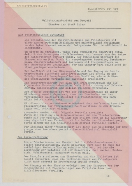 Schriftstück, Erläuterungsbericht Wettbewerb, dreiseitiges Dokument