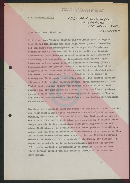Dreiseitiges Schriftstück zur städtebaulichen Situation