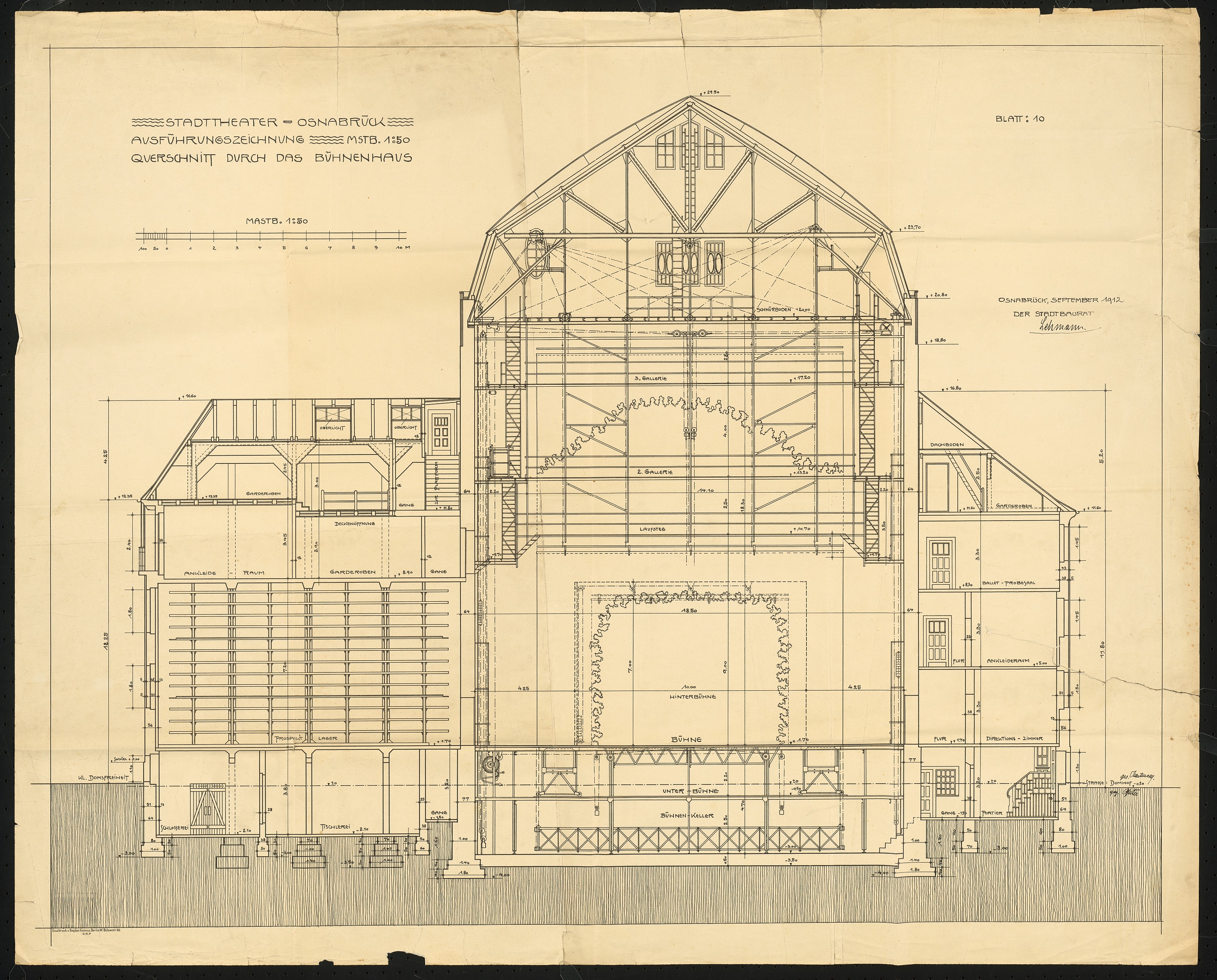 Querschnitt durch das Bühnenhaus 1:100
