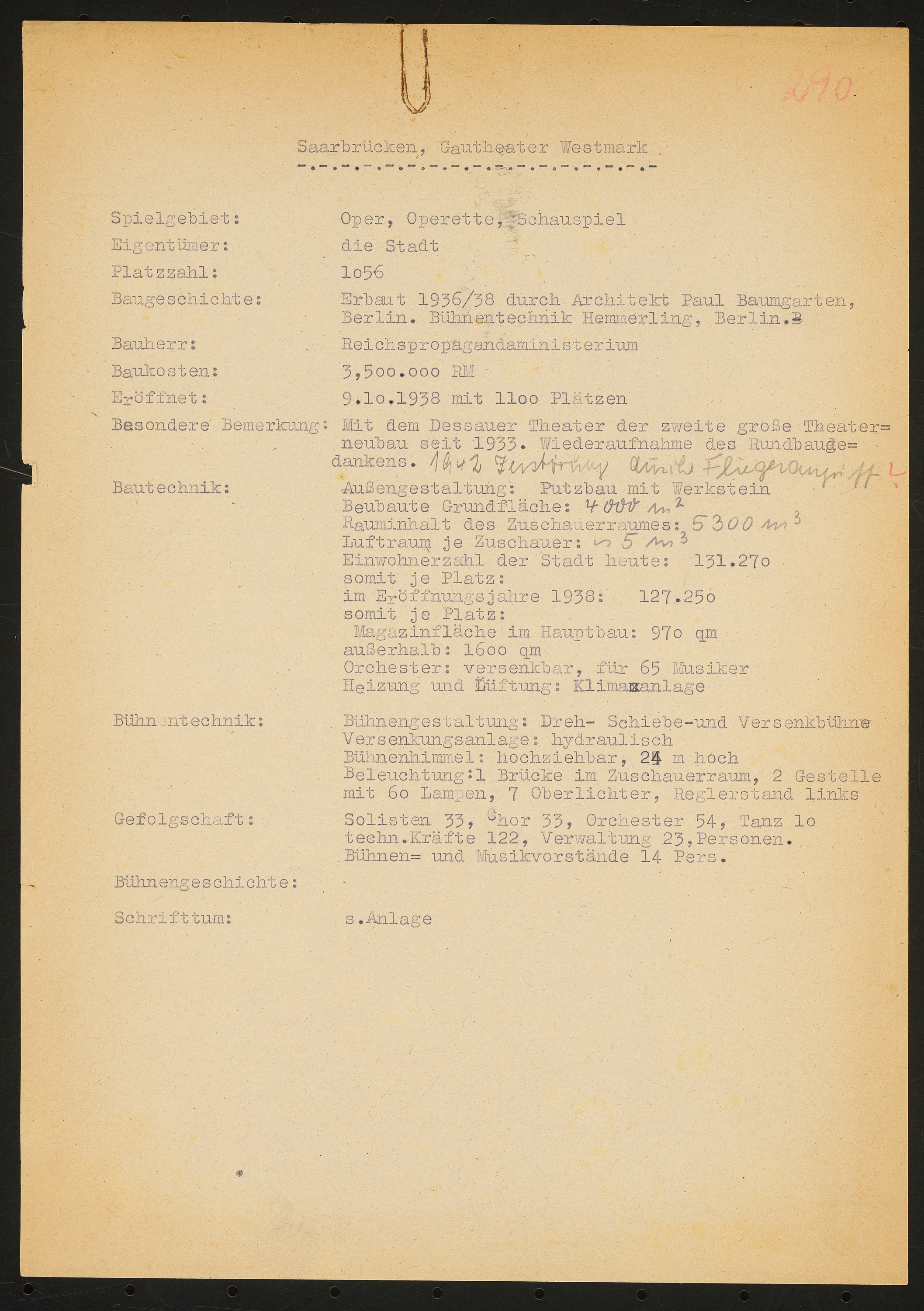 Gautheater Westmark (auch: Grenzlandtheater Saarpfalz, Saarländisches Staatstheater), Saarbrücken