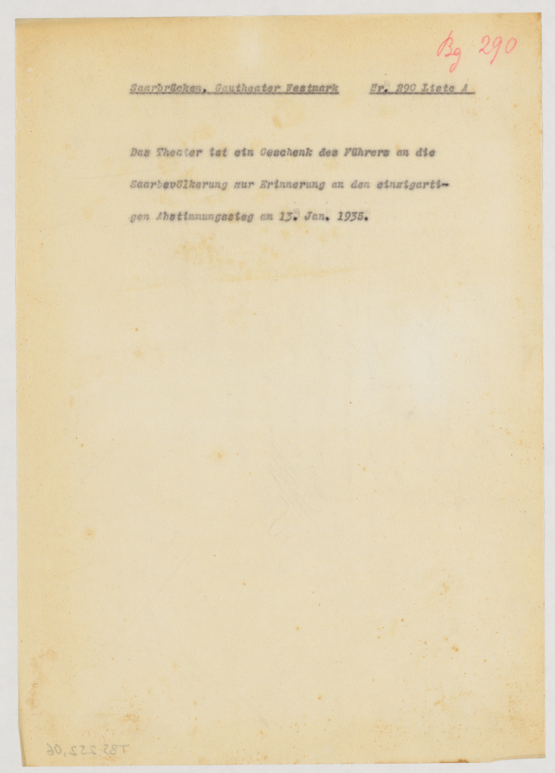 Gautheater Westmark (auch: Grenzlandtheater Saarpfalz, Saarländisches Staatstheater), Saarbrücken