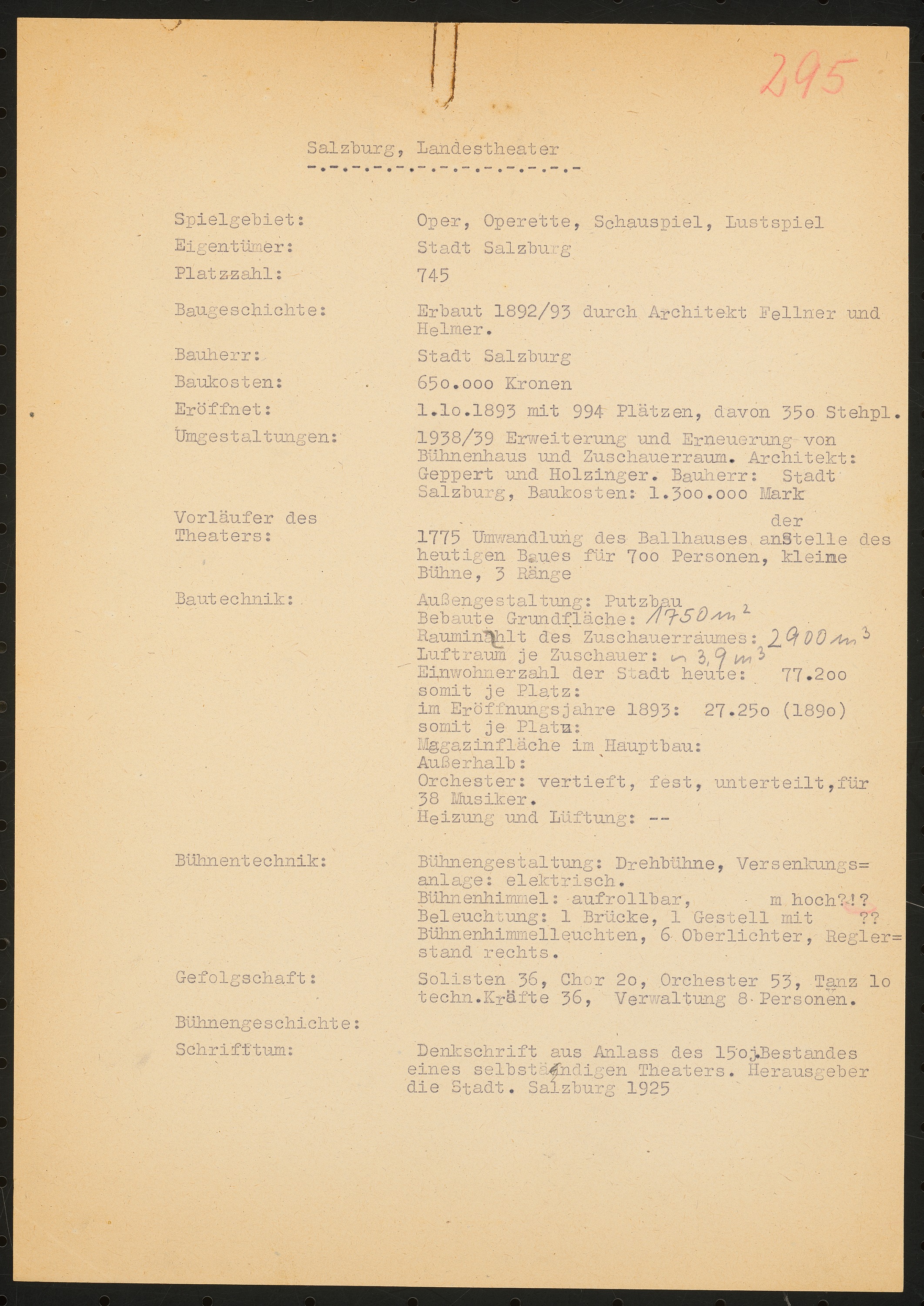 Schriftstück zum Fragebogen für das Handbuch »Das Deutsche Theater«, zwei Seiten
