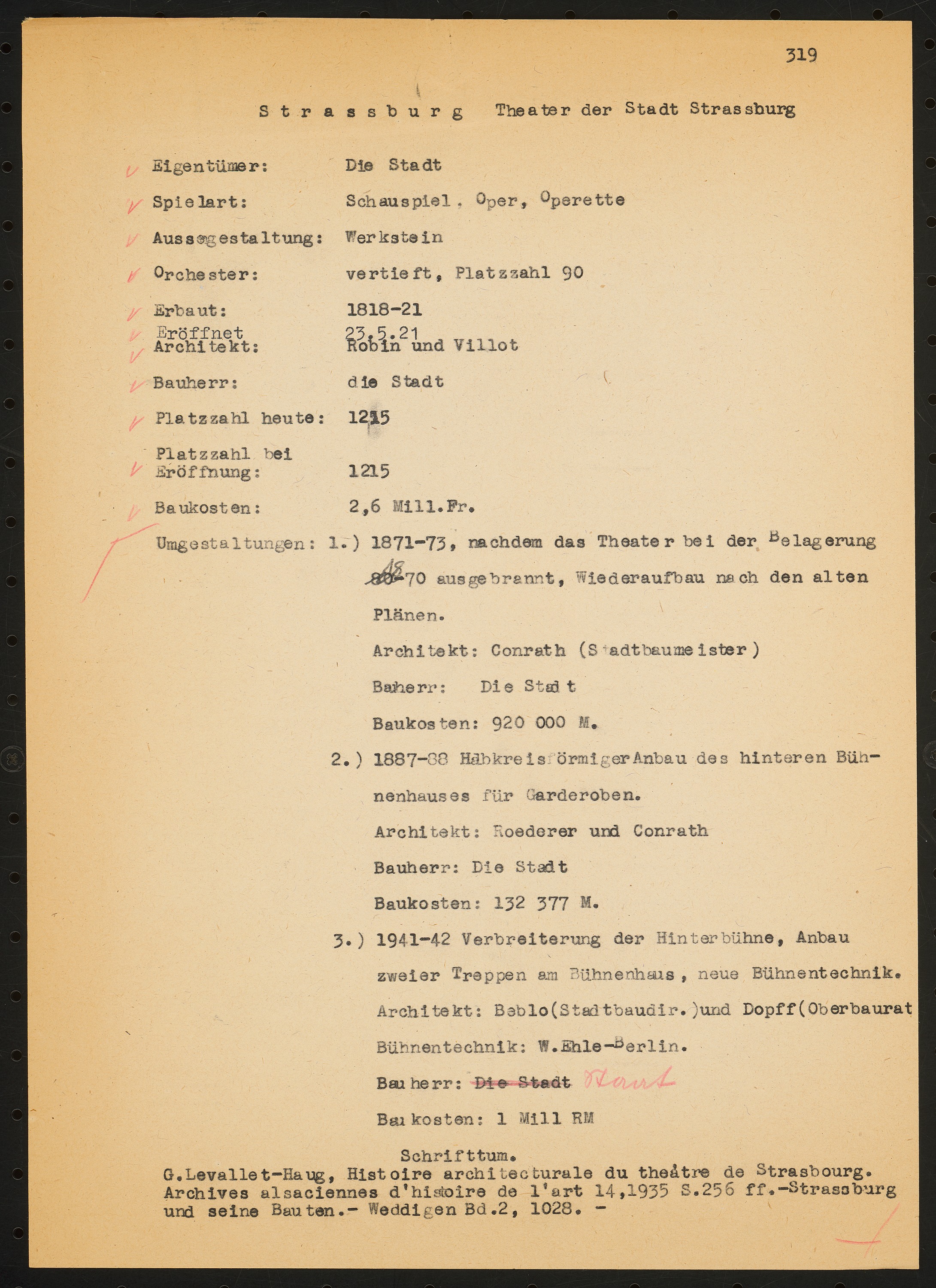 Schriftstück zum Fragebogen für das Handbuch »Das Deutsche Theater«