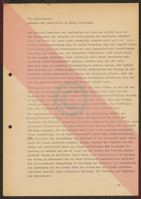 Mehrseitiges Schriftstück zu Gedanken des Architekten zur Mercatorhalle