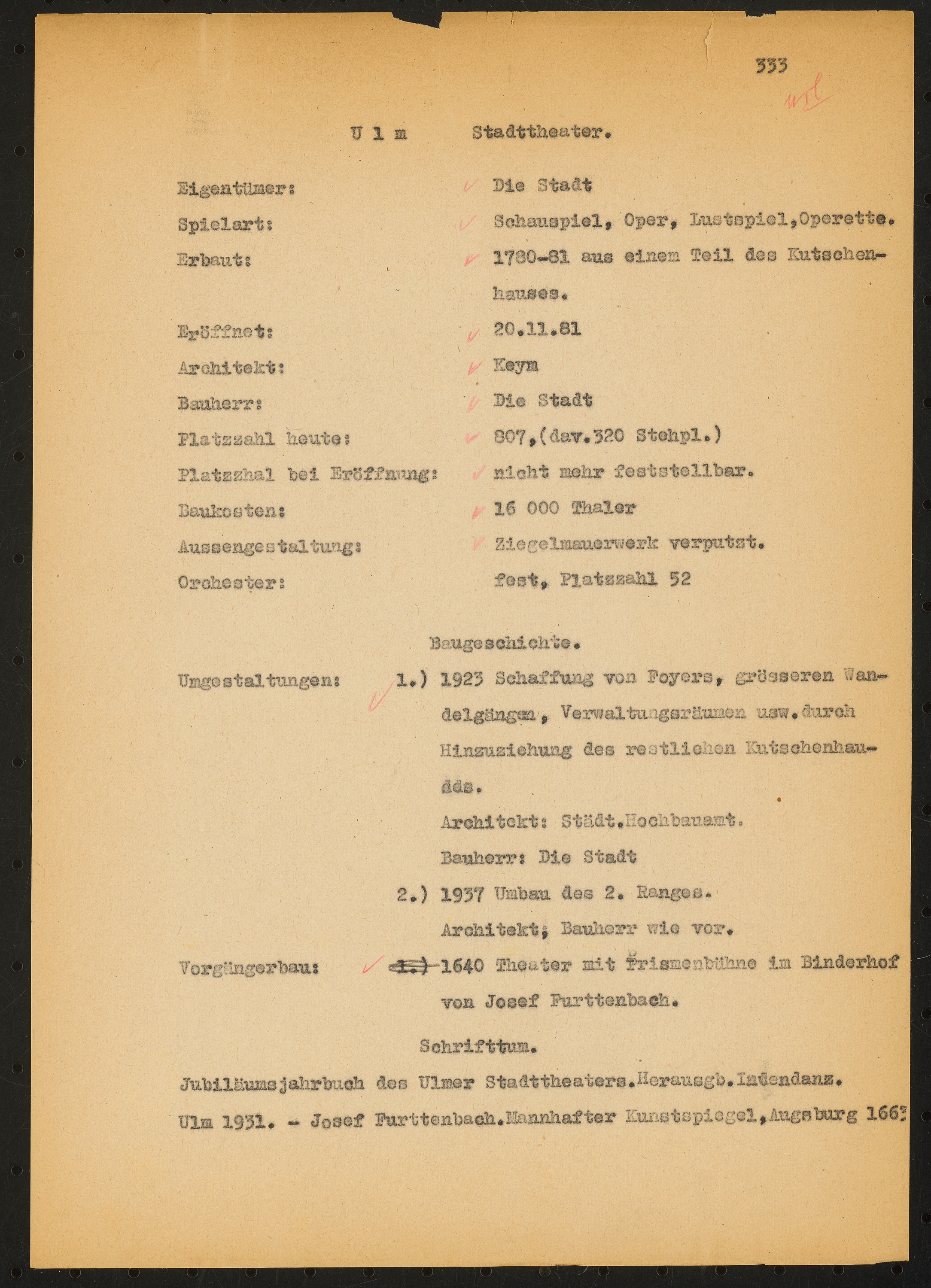 Schriftstück zum Fragebogen für das Handbuch »Das Deutsche Theater«
