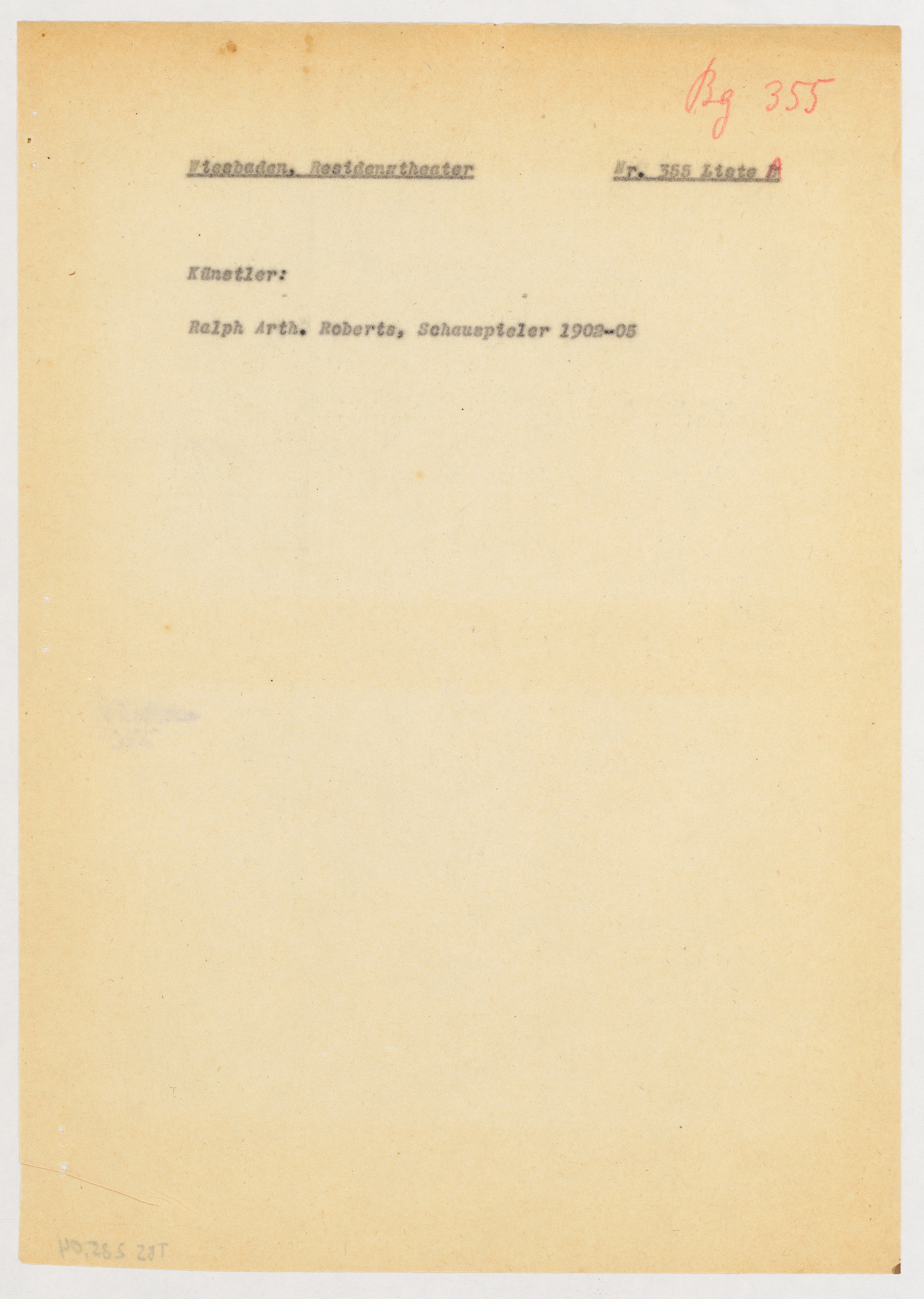 Schriftstück zum Fragebogen für das Handbuch »Das Deutsche Theater«