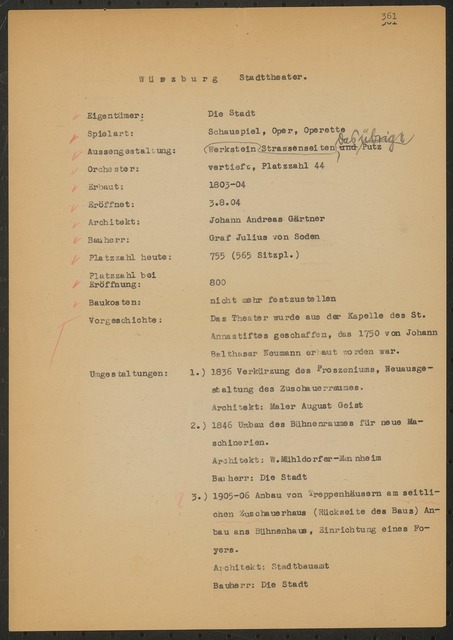 Schriftstück zum Fragebogen für das Handbuch »Das Deutsche Theater«, zwei Seiten