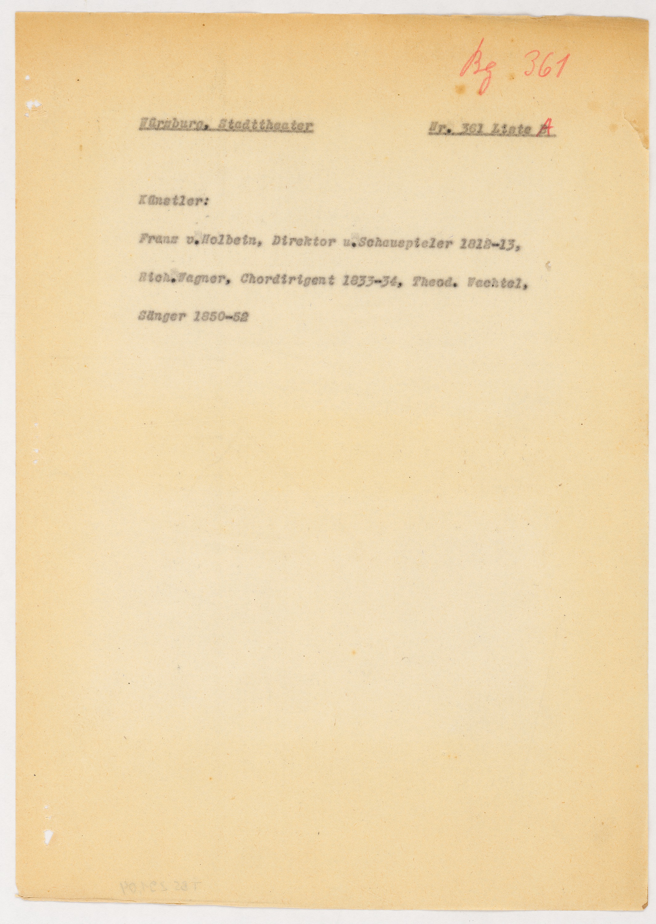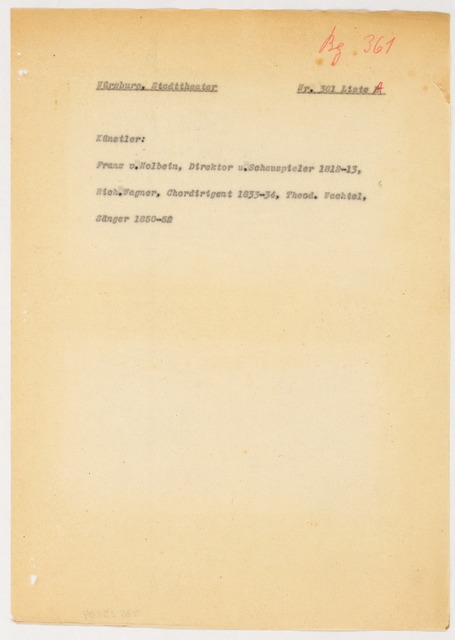 Schriftstück zum Fragebogen für das Handbuch »Das Deutsche Theater«