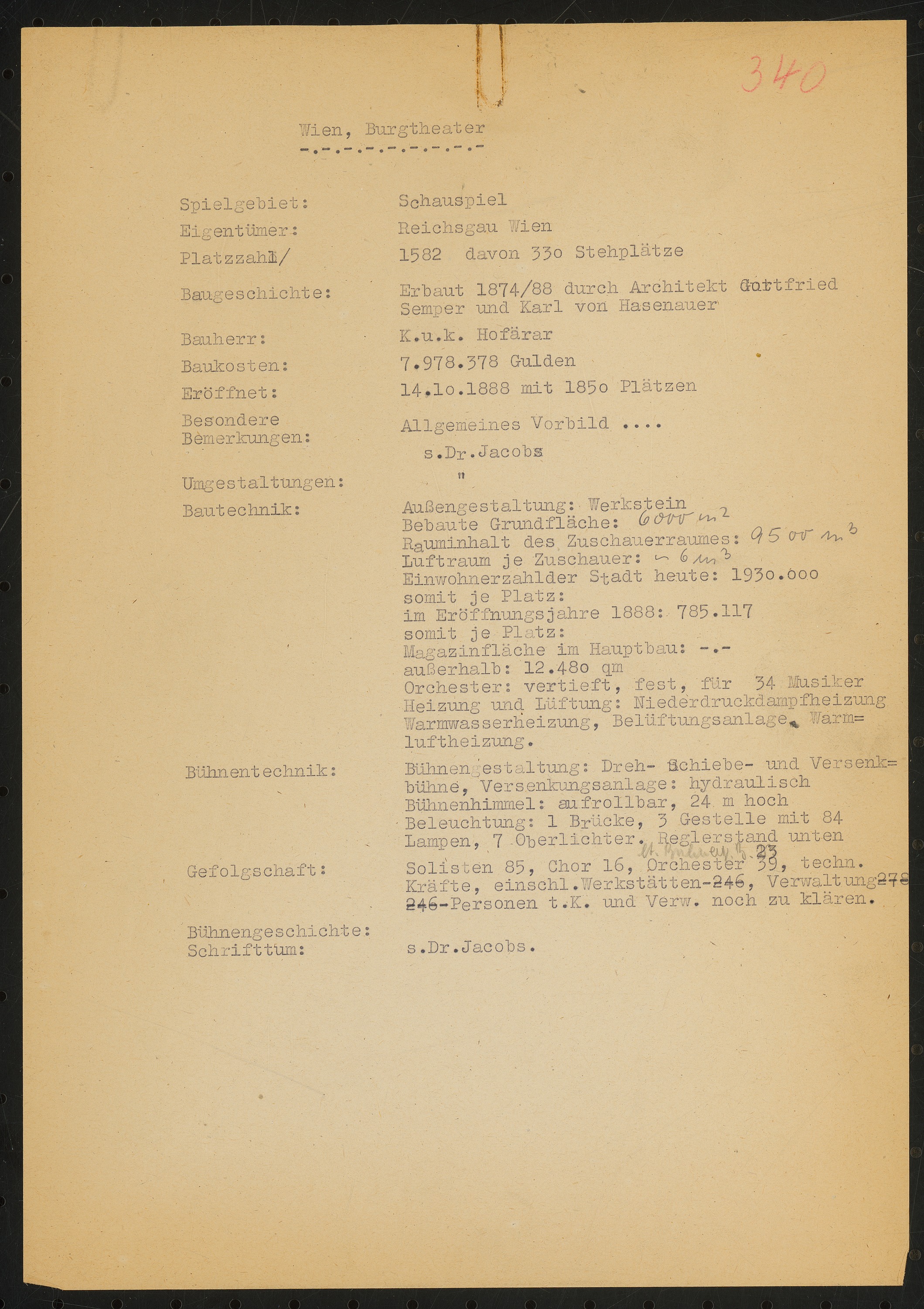 Schriftstück zum Fragebogen für das Handbuch »Das Deutsche Theater«