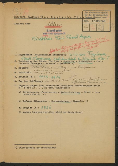 Fragebogen für das Handbuch »Das Deutsche Theater«, vierseitiges Dokument