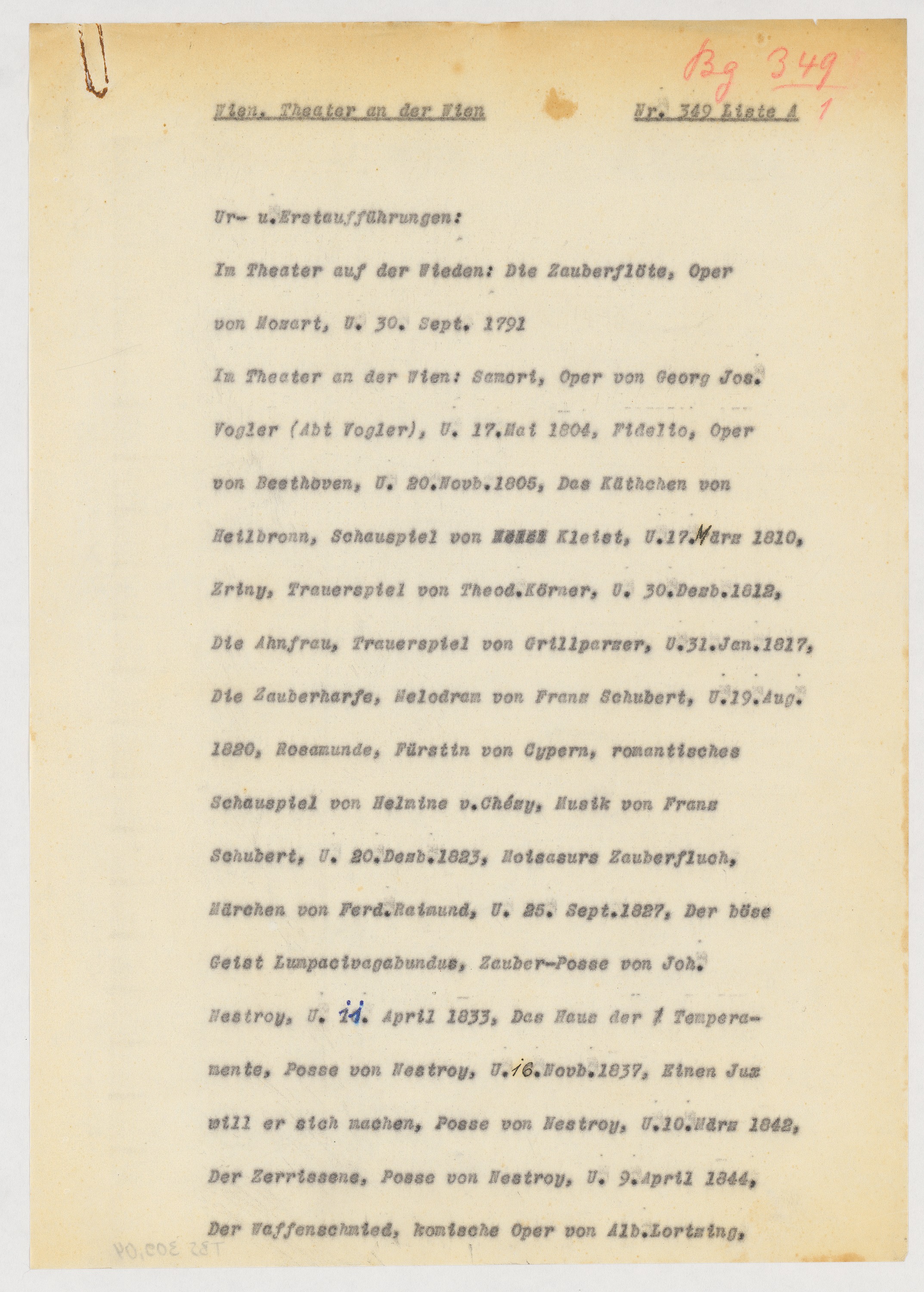 Schriftstück zum Fragebogen für das Handbuch »Das Deutsche Theater«, sieben Seiten