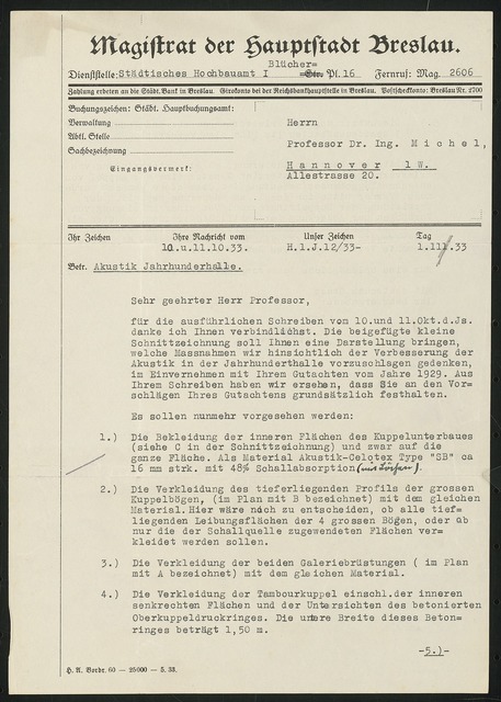 Jahrhunderthalle, Breslau. Akustikgutachten
