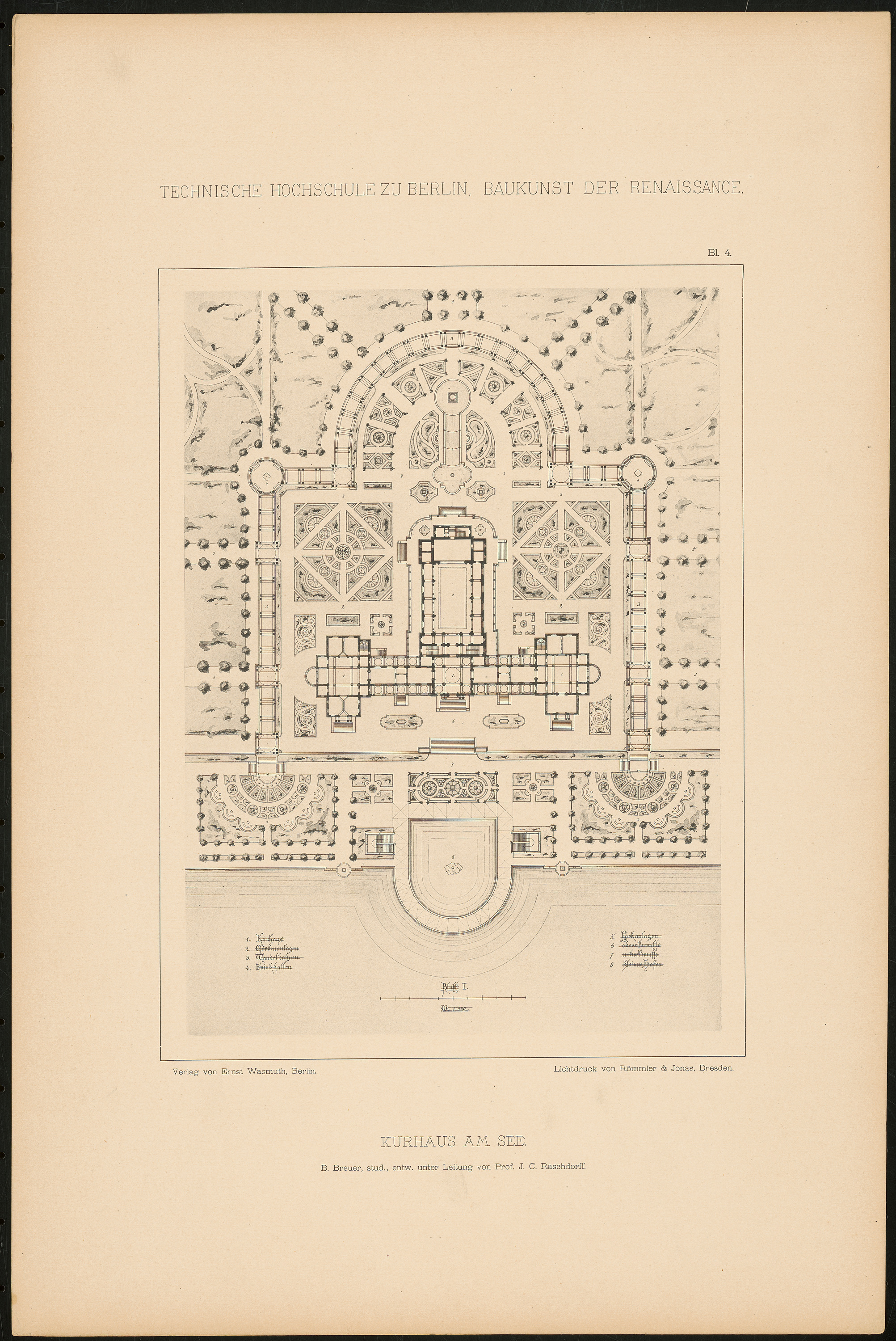 Lageplan (aus: Baukunst der Renaissance, Entwürfe von Studirenden unter Leitung von J. C. Raschdorff, III. Jahrgang, Berlin 1882)