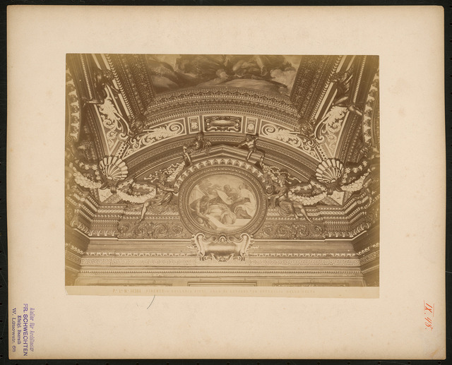 Detailansicht: Deckenstuck und Malerei im Sala di Saturno von Cortona und Ferri