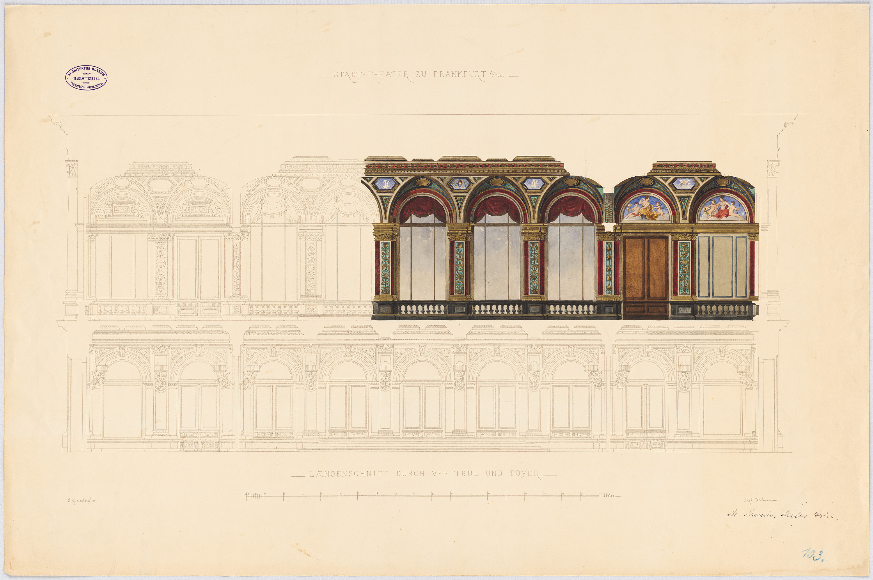 Längsschnitt durch Vestibül und Foyer 1:50 (von Inv.Nr. 1443)