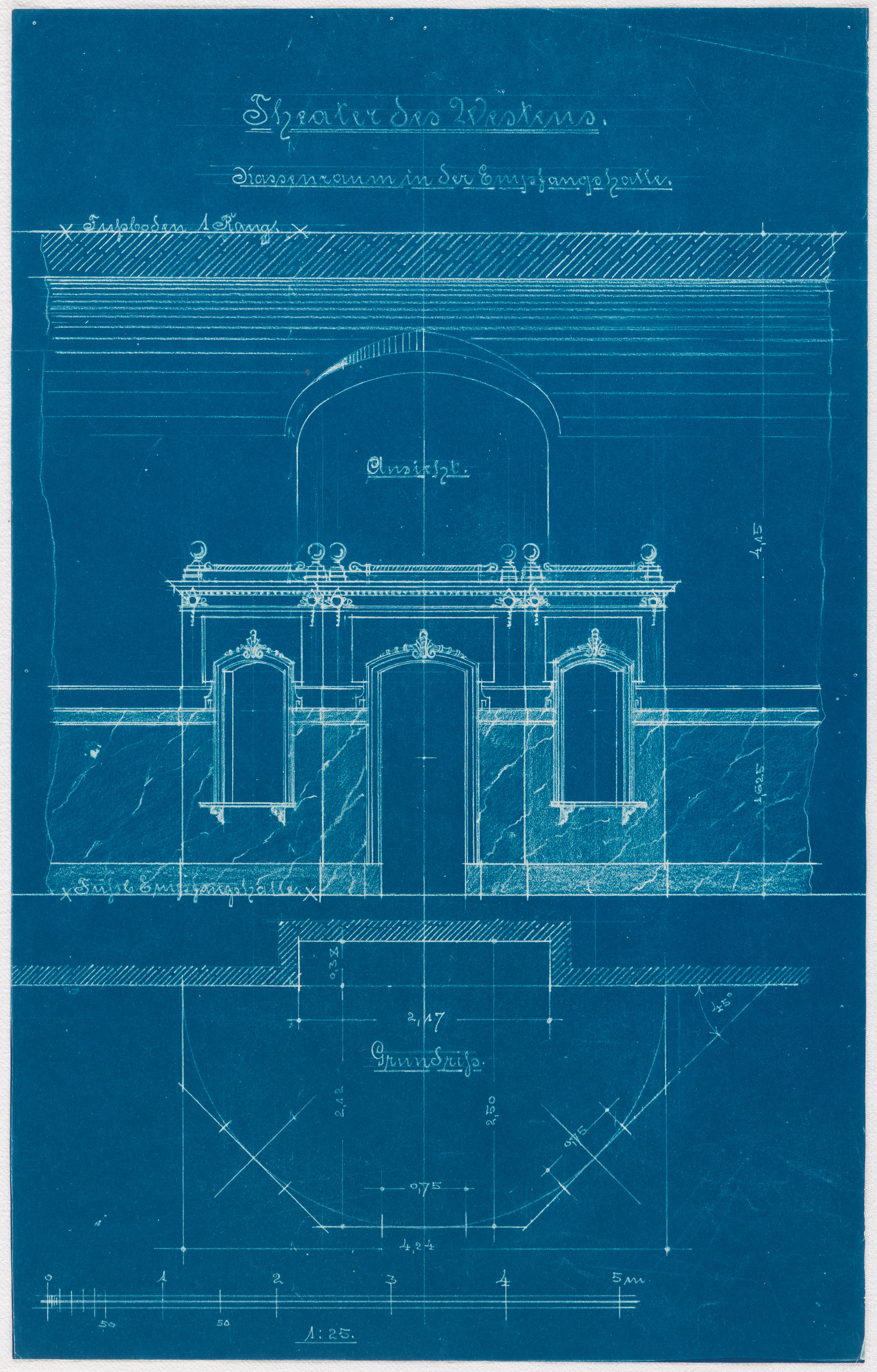Eingangshalle und Kassenraum in Grundriss und Aufriss 1:25