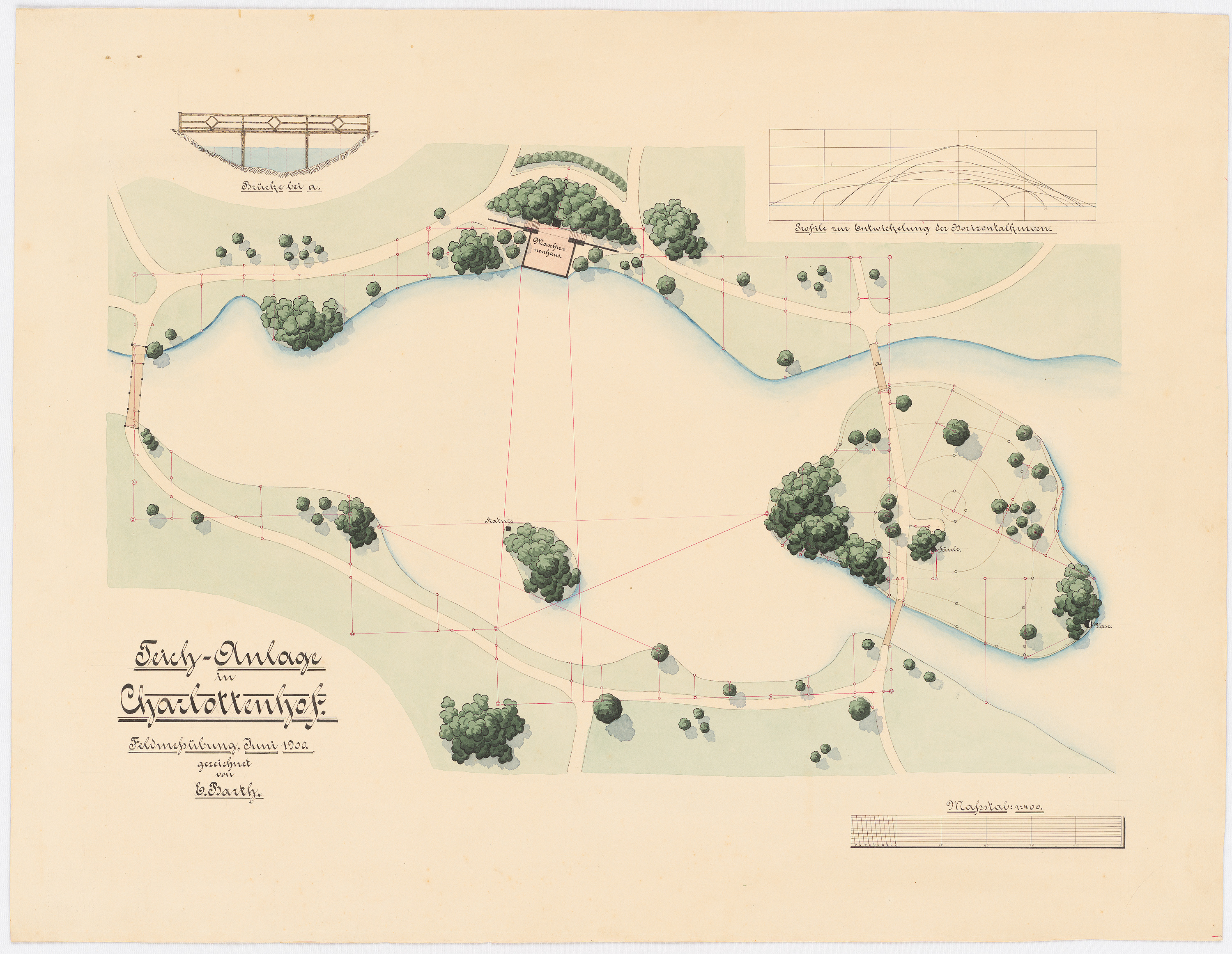Feldmess- und Zeichenübung an der Teichanlage in Charlottenhof, Potsdam