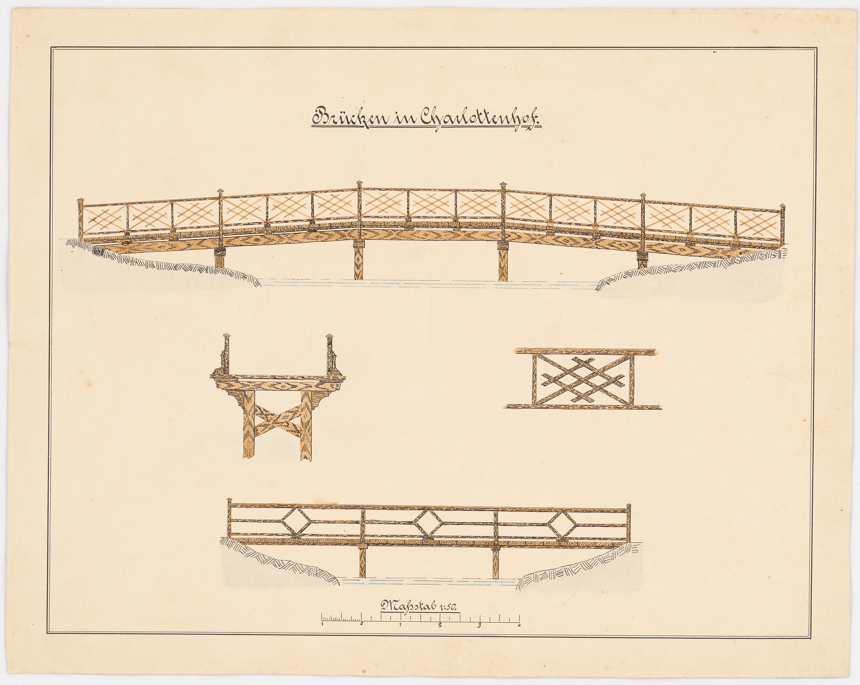 Feldmess- und Zeichenübung an der Teichanlage in Charlottenhof, Potsdam