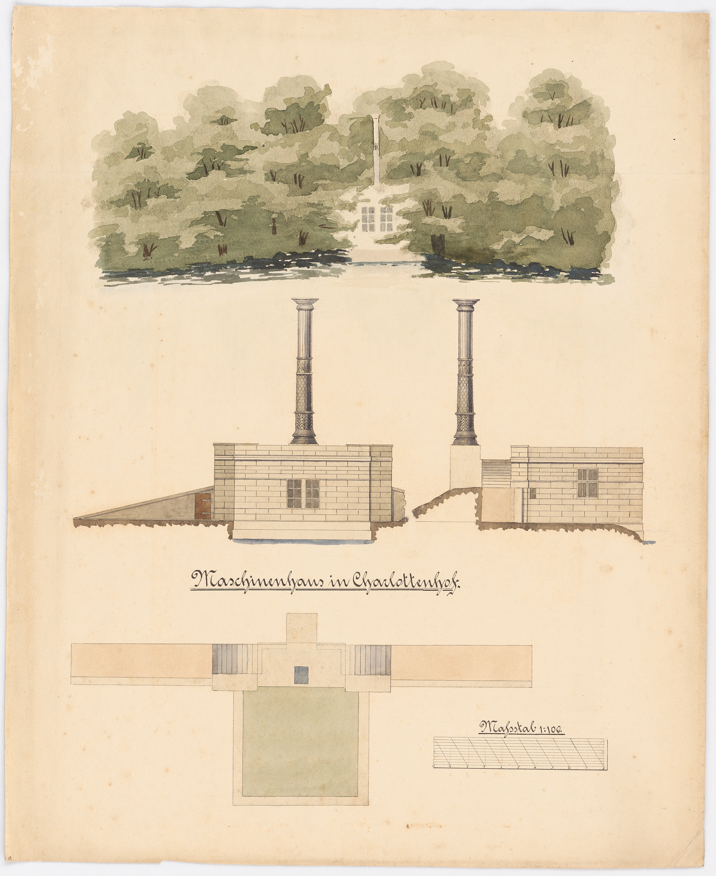 Feldmess- und Zeichenübung an der Teichanlage in Charlottenhof, Potsdam