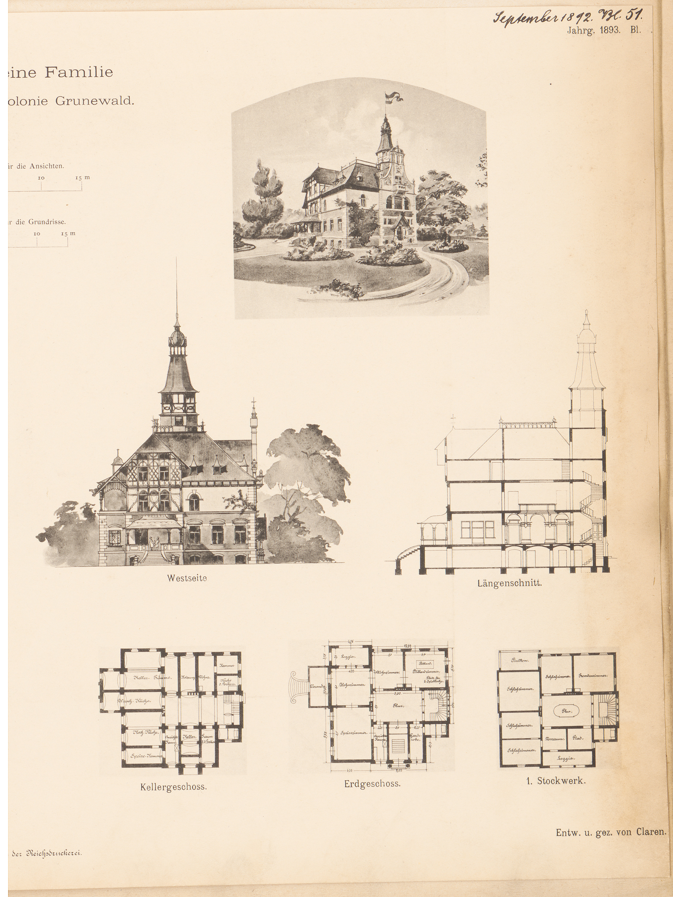 Villa für eine Familie, Berlin-Grunewald. Monatskonkurrenz September 1892