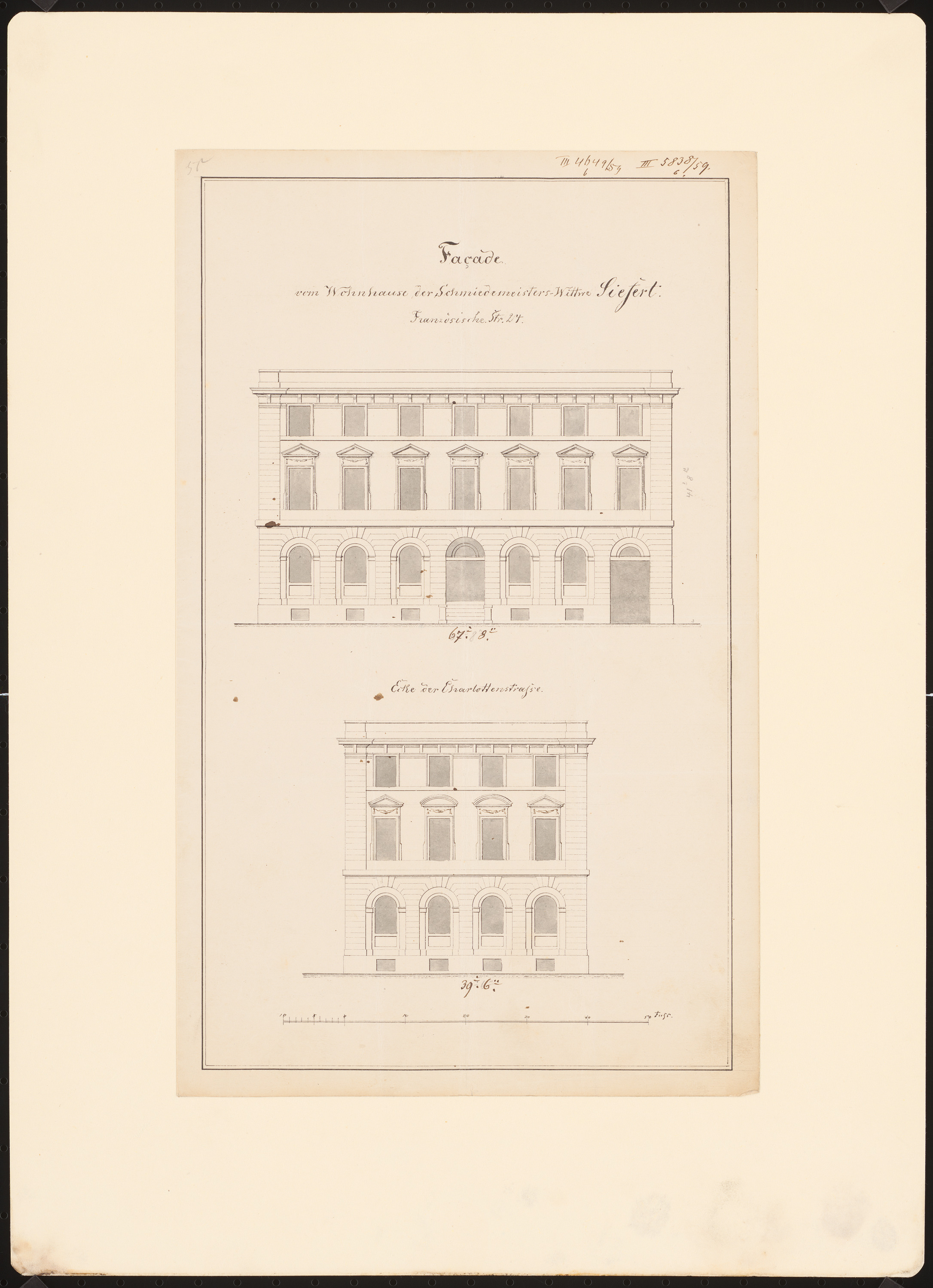 Potsdamer Bürgerhäuser. Bauaufnahmen (sog. Ziller-Mappe) um 1850. Wohnhaus Französische Straße No. 24 (Baujahr 1781)