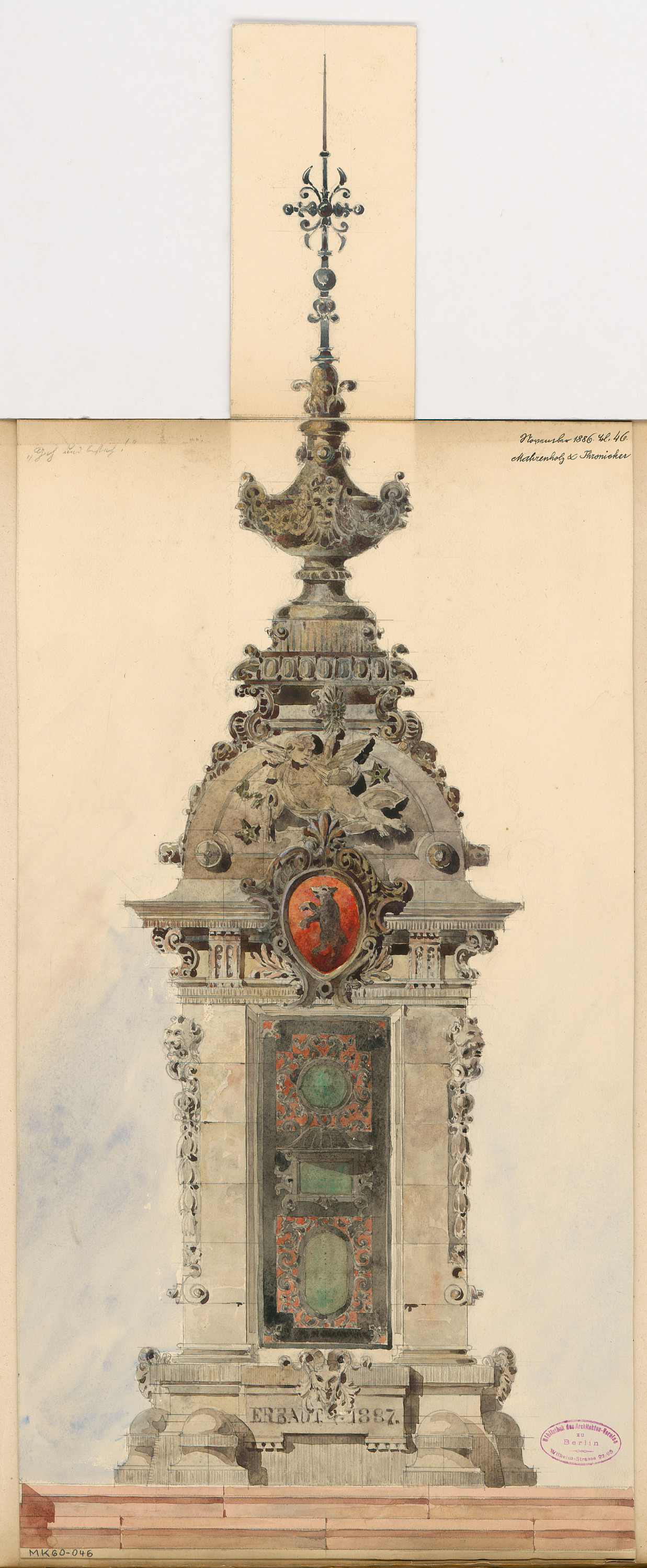 Wettersäule für den Schlossplatz, Berlin. Monatskonkurrenz November 1886