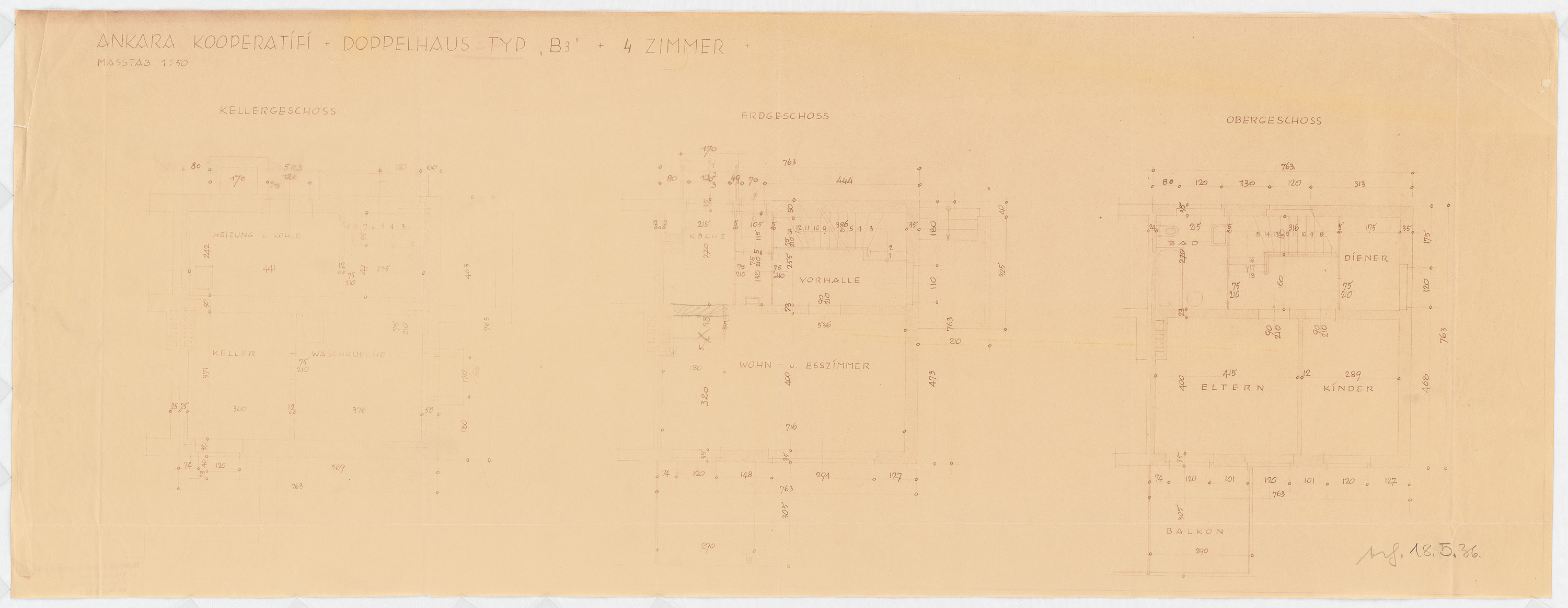 Gesamtbebauungsplan Ankara. Ankara Kooperatifi. Haustypen